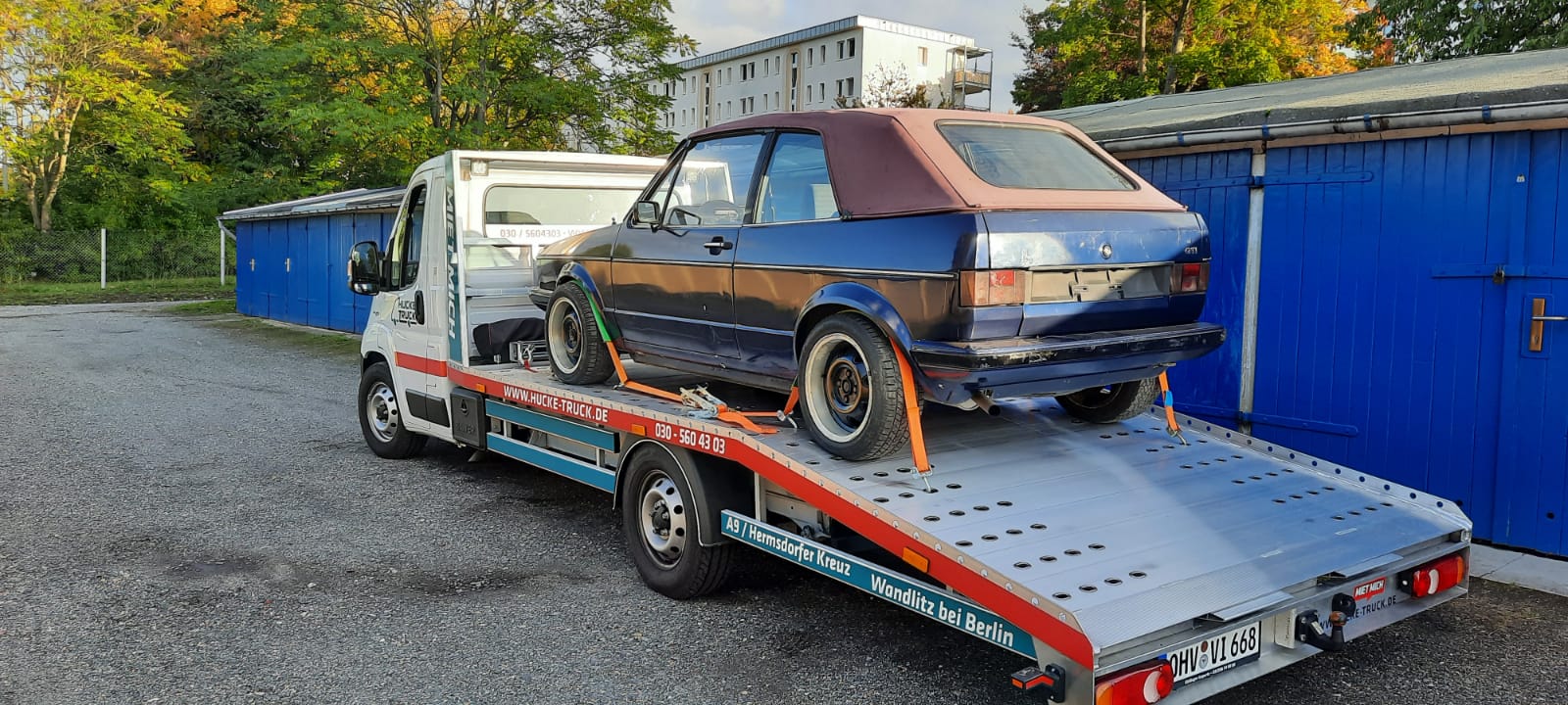 Am 16.Oktober 2021 haben wir diesen Einser Cabrio, welchen ich auf Ebay fand, abgeholt. Wir führen mit einen gemieteten Abschleppwagen von Dingelstedt, einem kleinen Ort in Sachsen Anhalt, nach Zwickau.