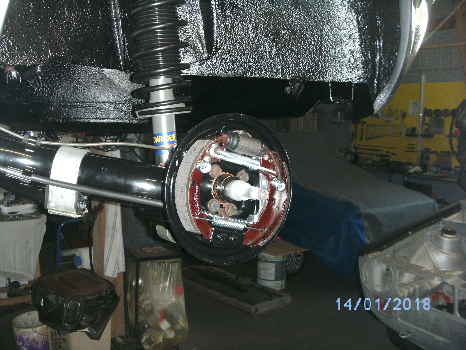 Neue Handbremsseile wollte ich heute auch verbauen. Ich habe nur diesen Sicherungsring nicht durch das Loch in der Ankerplatte der Trommelnremse bekommen.