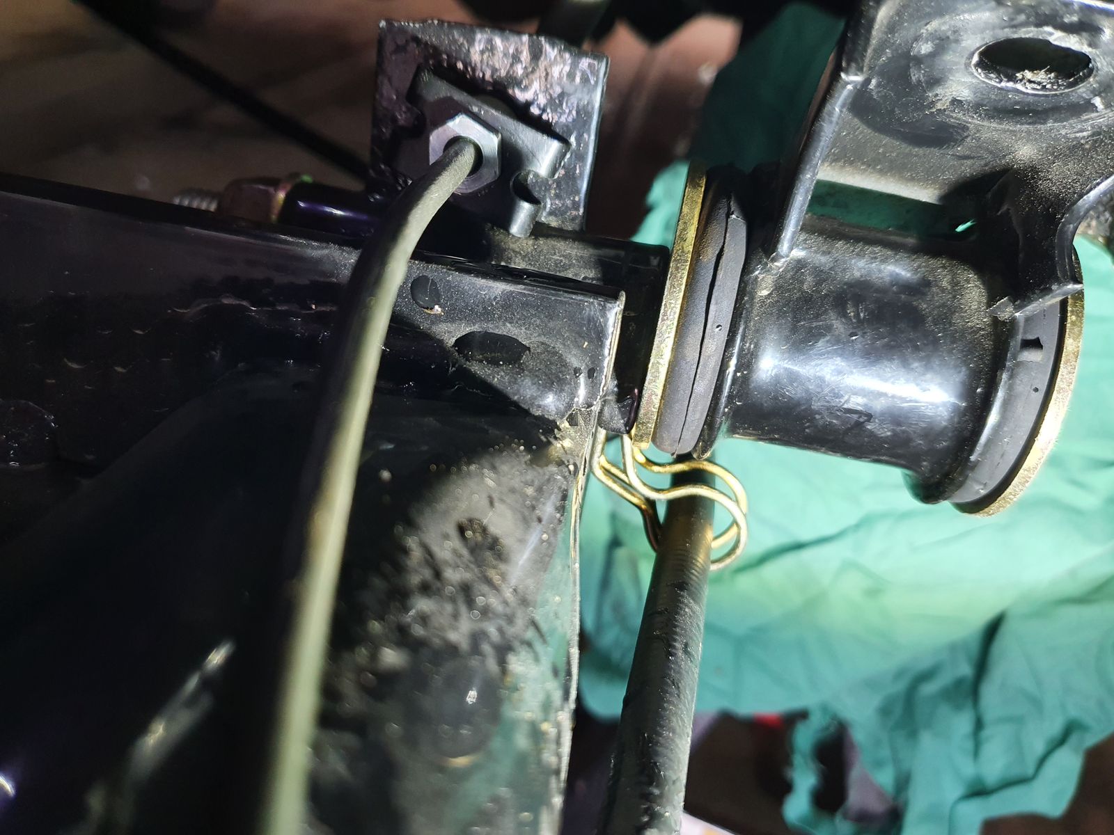 Dieser Bügel war irgendwie mit der Schraube in dem Lager der Hinterachse drin wenn ich mich recht erinnere. War auf jeden Fall merkwürdig. Ich such mal in den Fotos.