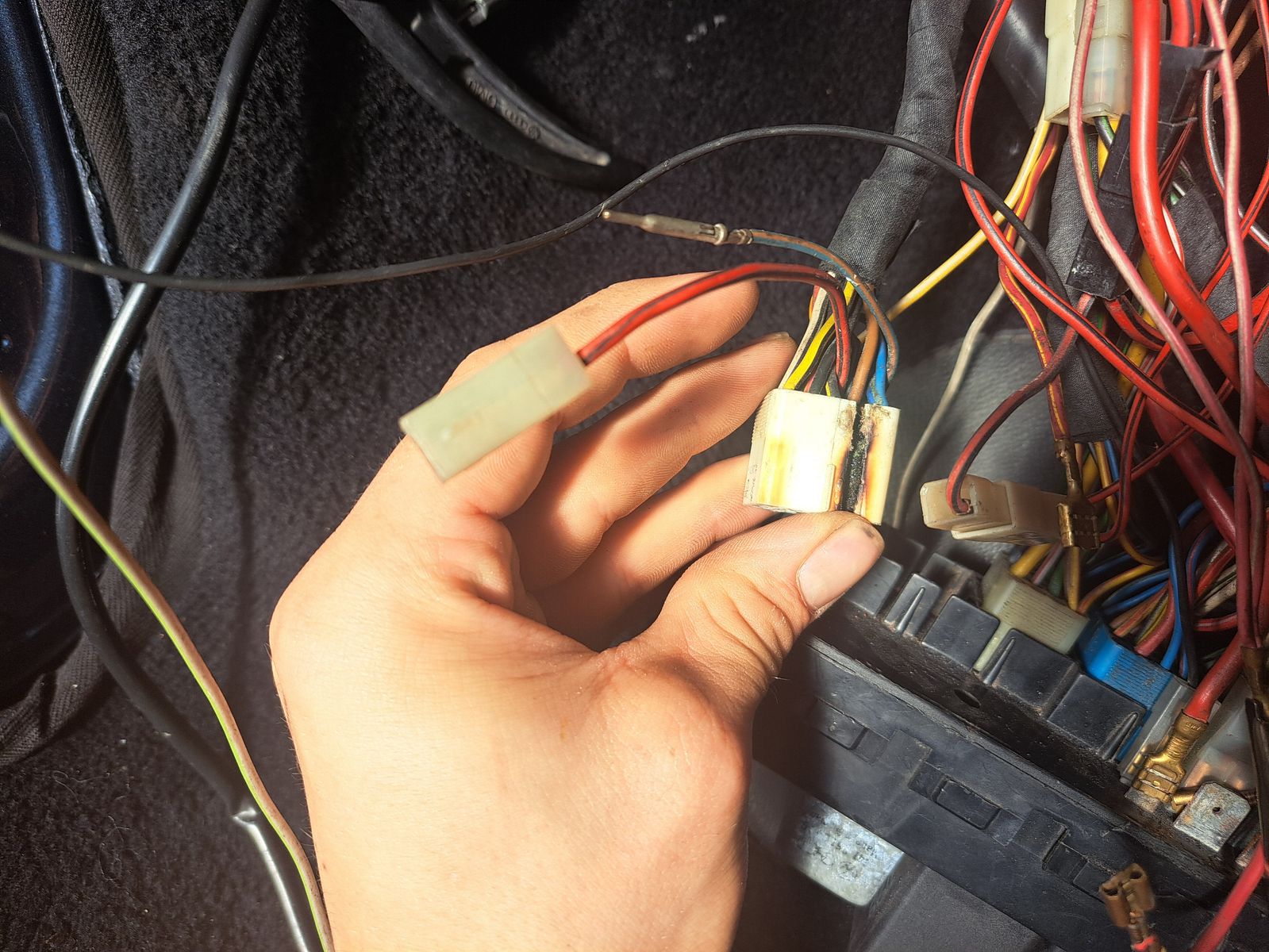 Leider ist da der Steckerpin weggeschmort. Damit das nicht mehr geschieht soll über diesen Steckerpin ein weiteres Relais schalten, user dessen Arbeitsstrom dann die Kraftstoffpumpe bestromt wird.