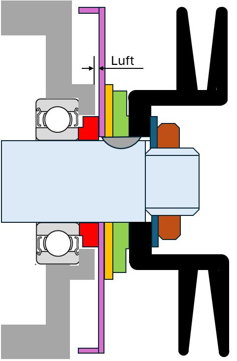 Das ist aber die Kunterscheibe für die Riemenscheibe. Ist so nicht richtig. Wie gesagt, eine Distanzbuchse bzw. Stufenscheibe muss dahin.
