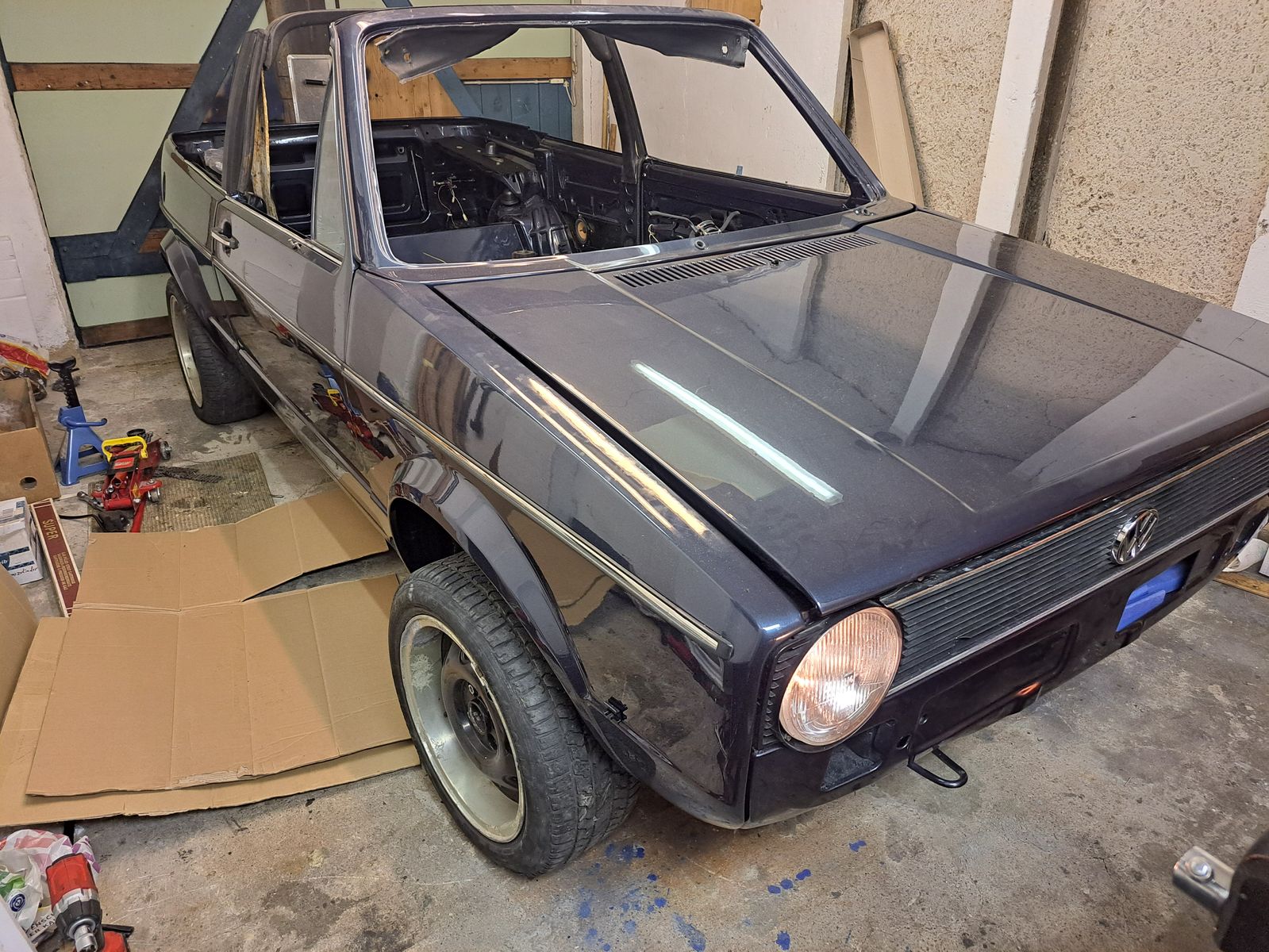 Nächste Woche kommen dann endlich die Achsen ins Cabrio und dann kommt der Umzug in die neue Schrauberhalle. Endlich raus aus der kleinen DDR Garage. ![]()