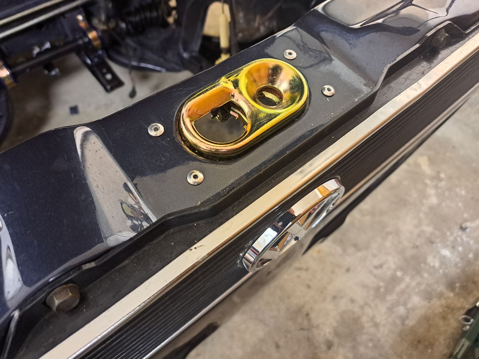 Dann wollt ich das neu verzinkte Motorhaubenschloss verbauen und bemerkte dass da irgendwas nicht passt.