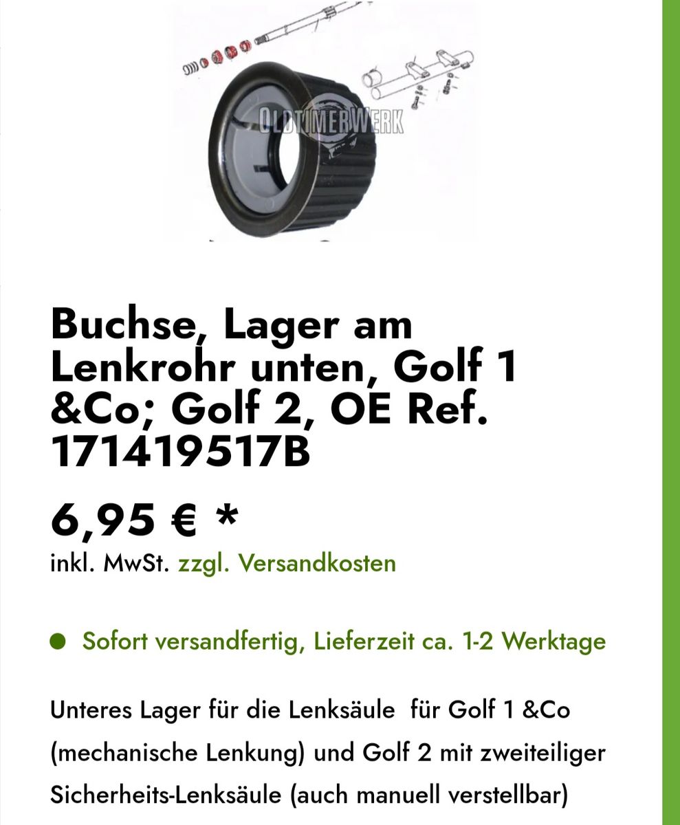 Das neue Lager fürs Lenkgetriebe ist bestellt.