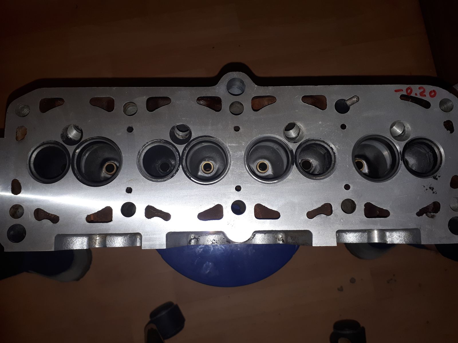 Und so sieht der Kopf aus nachdem ich ihn mit Aceton säuberte und er beim Motorenbauer in der Teilewaschmaschine zum anschließenden Planen war.