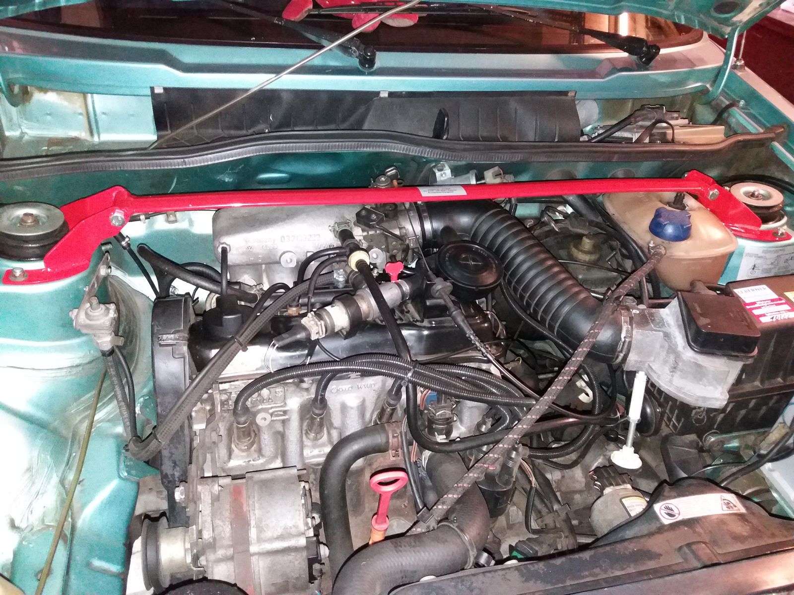 Hallöchen , soo gestern ist meine Wiechers Domstrebe gekommen , Jörg hat sie heute dann gleich verbaut . Das gute daran ist , das die Strebe flach ist , somit musste nichts umgeändert werden, und hat sofort gepasst . Bin schon gespannt aufs Neue Fahrgefühl