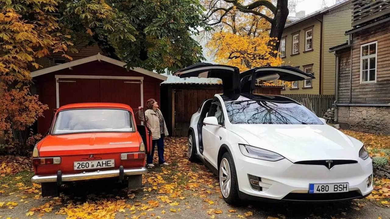 Diese 92-jährige hat 2 Autos. Einen "Tessler Moddl Icks" und einen "Moskvich 412". Rate mal welchen sie lieber fährt.