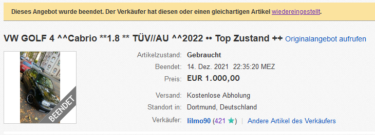 Hat den Titel des Themas von „Golf Cabrio 4 x versteigert - WTF ?“ zu „Golf Cabrio mehrfach versteigert - WTF ?“ geändert.