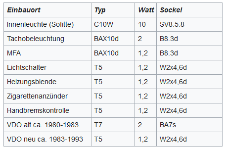 • hmmm Etka zeigt da für die Schalter beim 85er Bj die losen Lampen an . Da bleibt nur die Suche nach gebrauchten alten Fassungen ..... ich denke bei VW gibts den Kram mit eingelötetem Zeugs nimmer....
