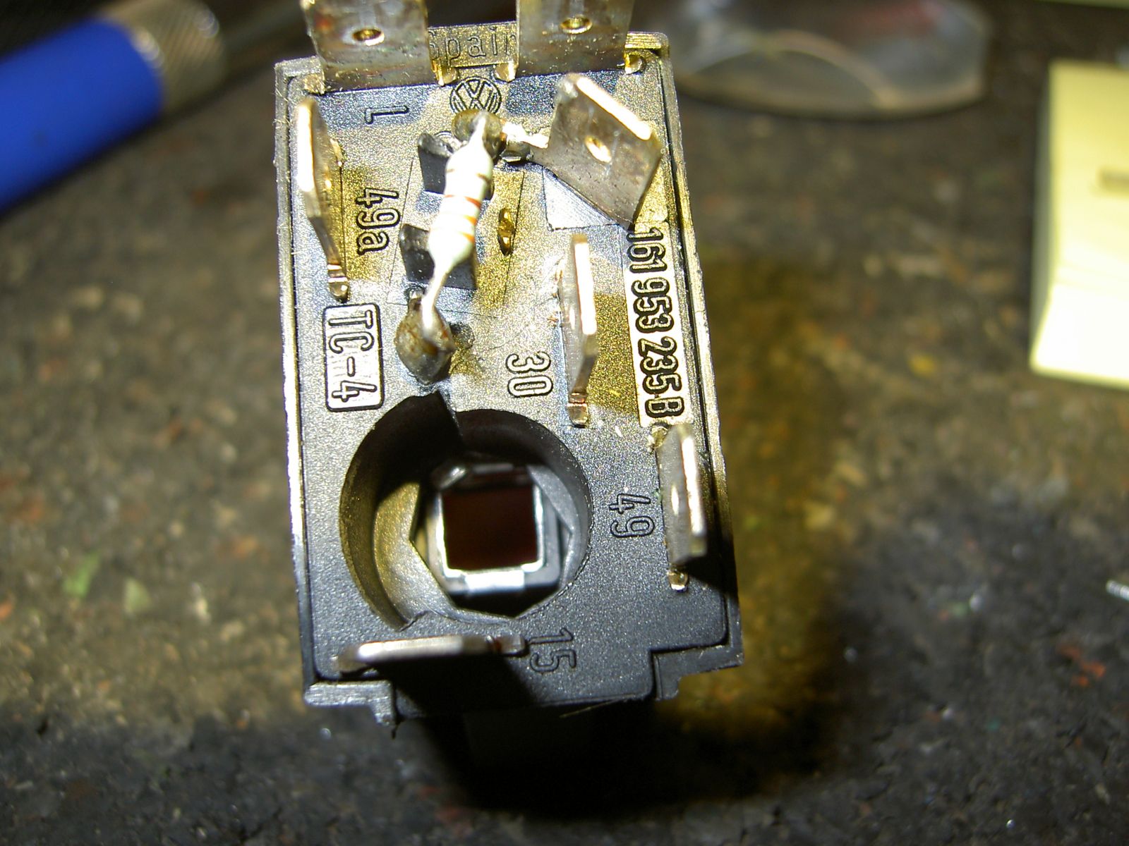 1. Warnblinklichtschalter: (Massekontakt am Fuß, Plusversorgung über Bajonett Schalter-Intern am Kopf)