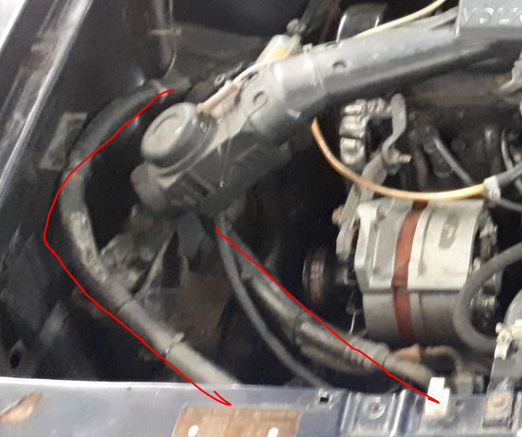 Wenn die Schläuche für die Servo auf der rechten Seite runter zum Lenkgetriebe gehen - dann wären die ja länger als ne Anakonda