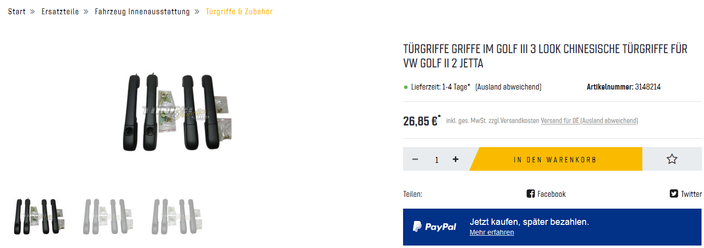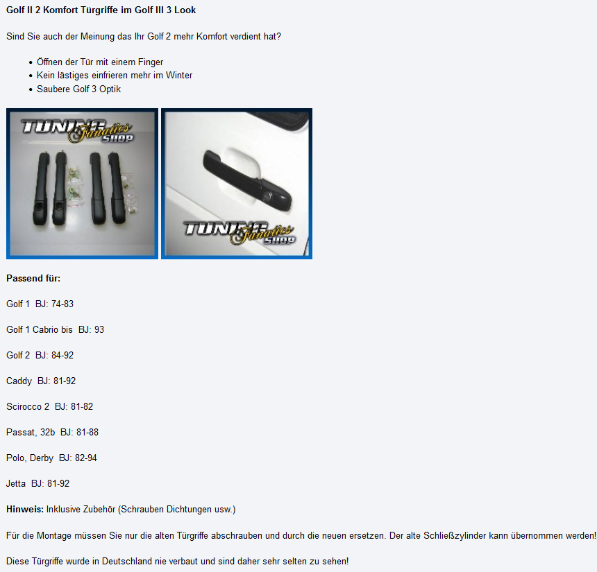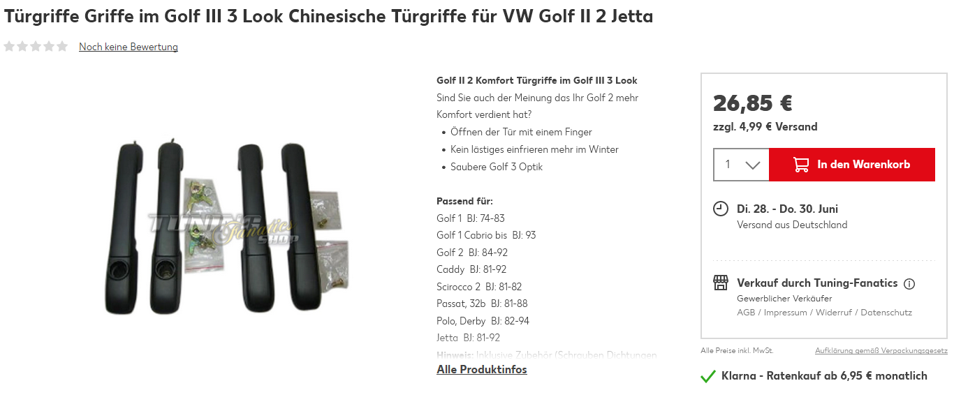 Diese Chinagriffe vom Golf 3 waren mir schon immer ein Graus! Da lob' ich mir die originalen Türgriffe - nicht Nachbau-Billigware!