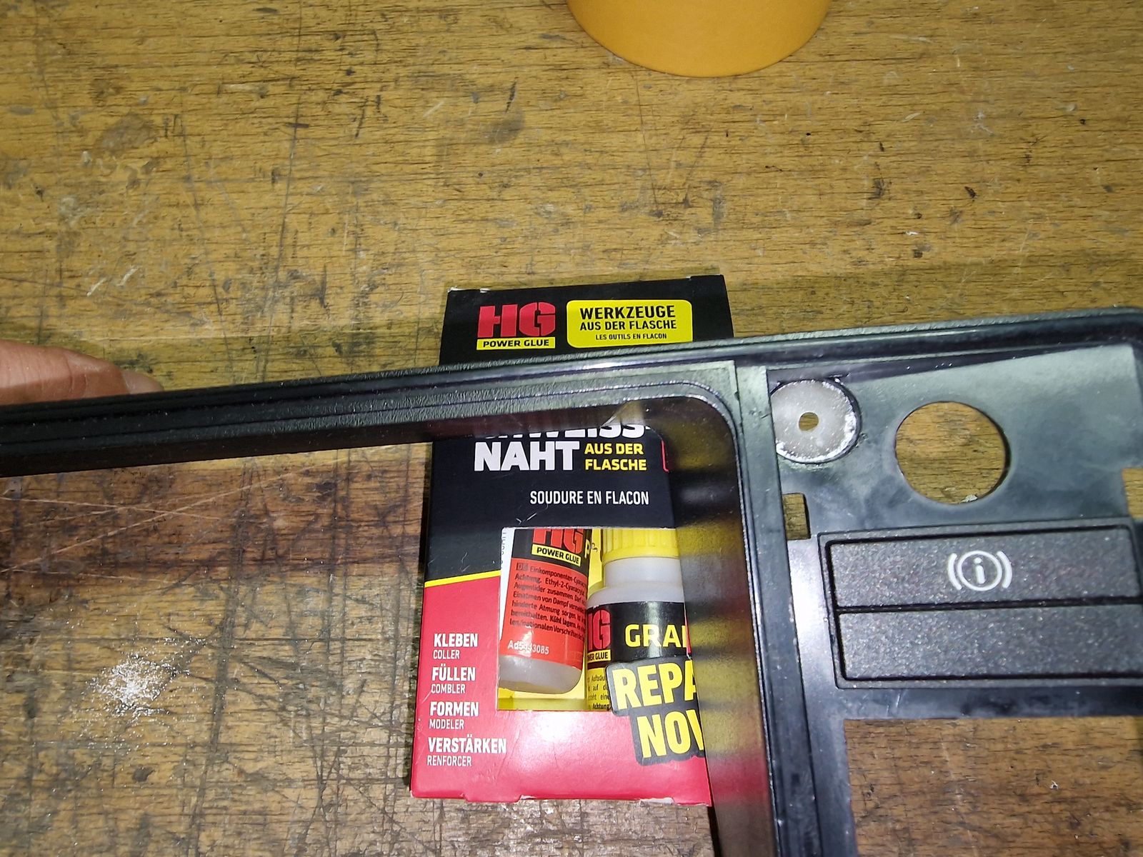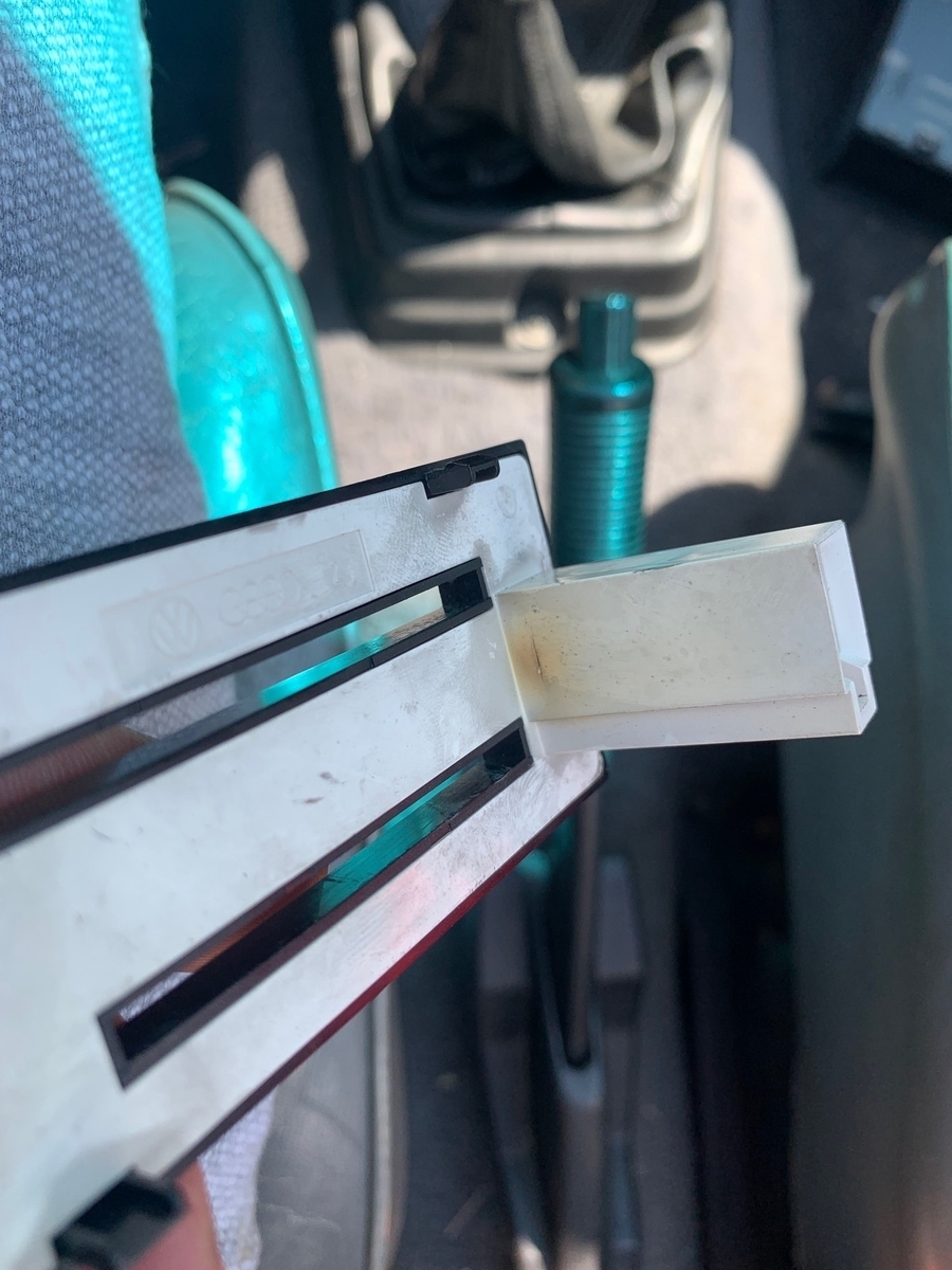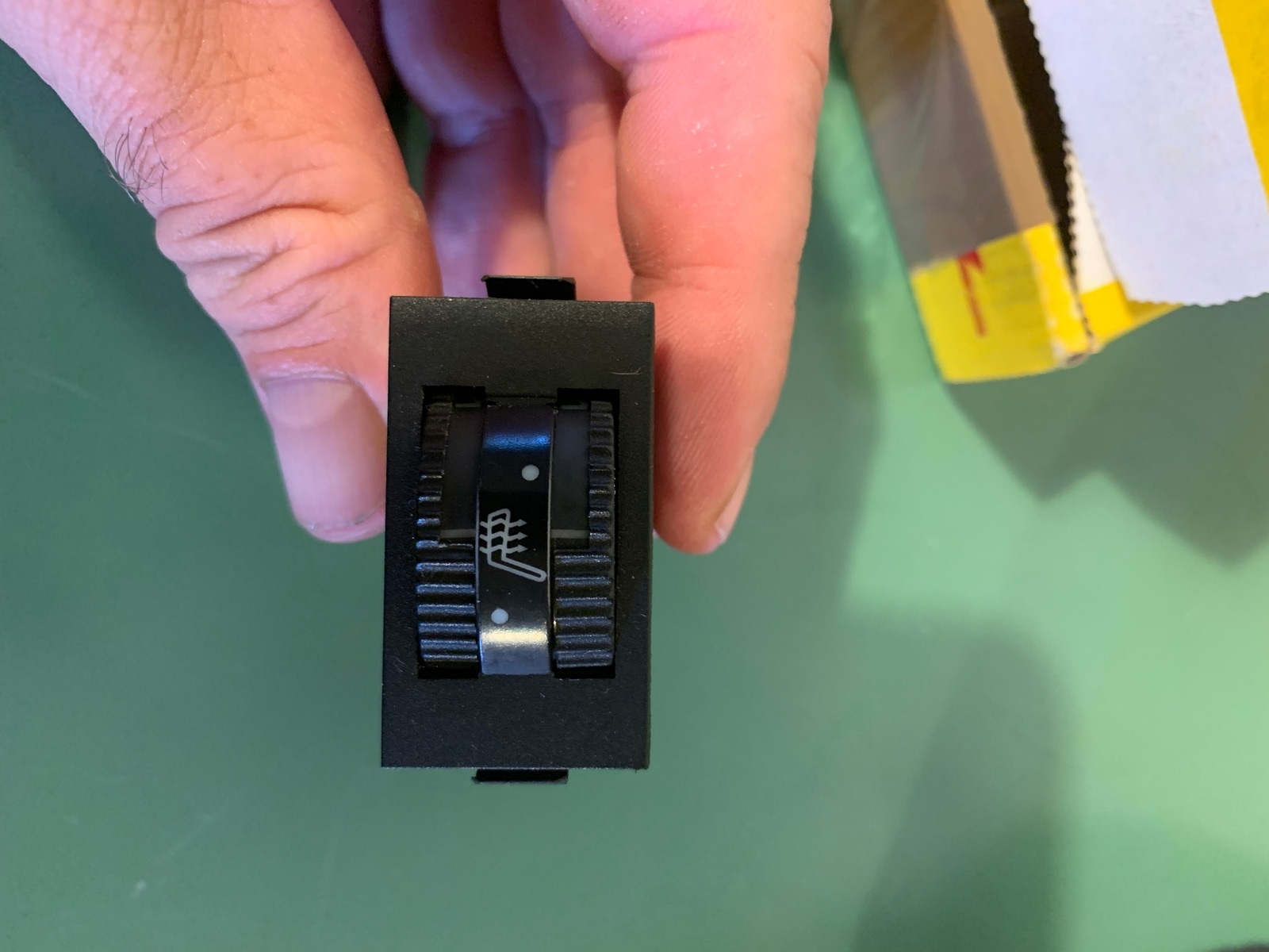 Anschließend noch den Schalter der Sitzheizung ausgebaut. Damit man es kleben kann sonst fällt die Abdeckung immer raus. Fehlt leider eine Nase wie man sieht.