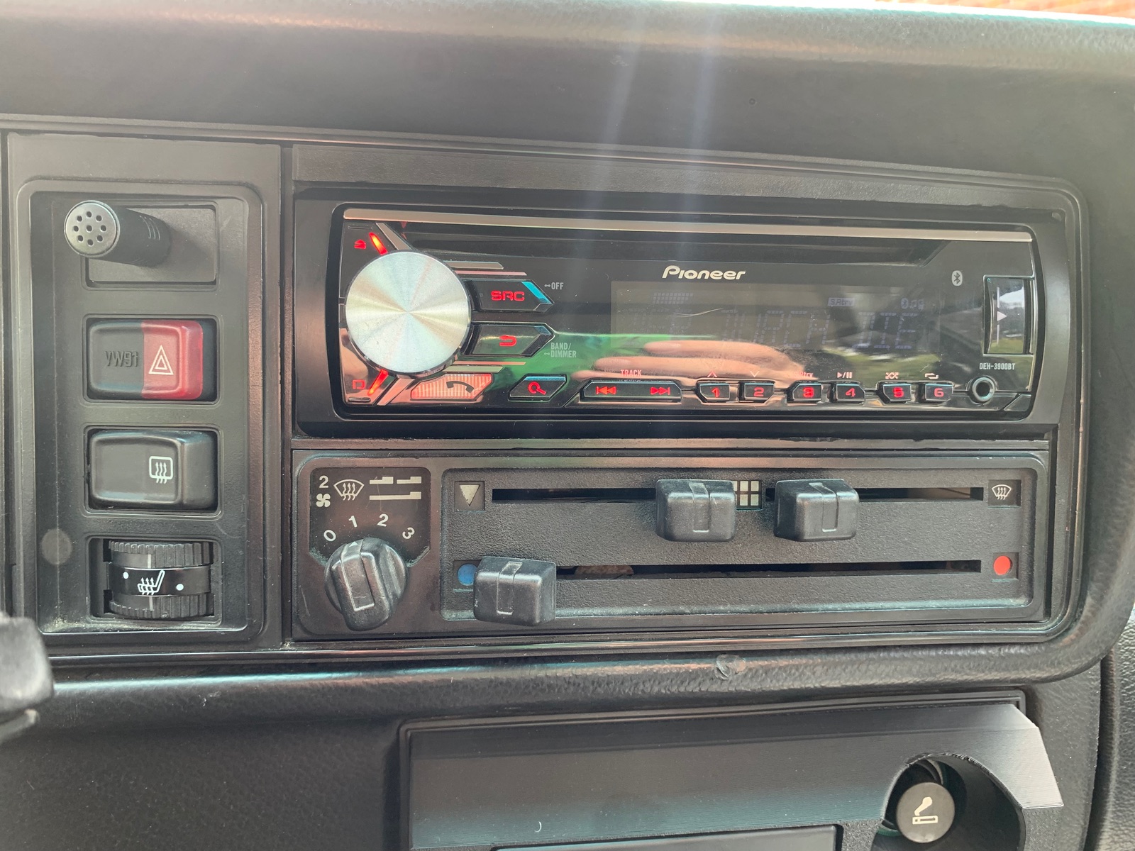 Und dann ging es innen weiter. Mich hat nach sporadischem Einbau genervt das das Radio wackelt. Also Radio nochmal raus. Rahmen auch raus. Musste ja eh das Mikro für die FSE noch irgendwo anbringen. Danke an golf-open-fan hatte ich den idealen Platz. Wo die alte Anhängerkontrollleuchte war kommt das Mikro hin. Eine neue inklusive Handbremskontrolle sitzt am Platz.