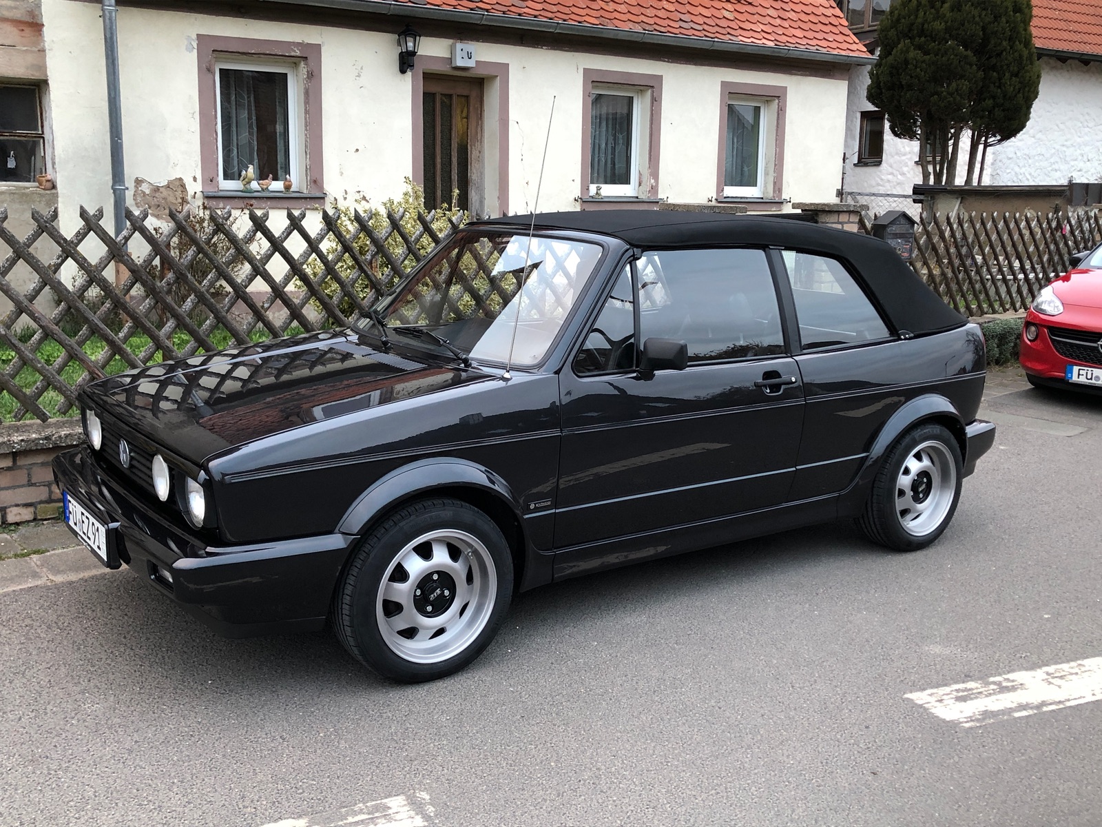 Ich fahre ein 93er Cabrio mit 2H Motor, Quartett Ausstattung und der damaligen Standard Kotflügelverbreiterung von Karmann. Aktuell habe ich meine Winterreifen drauf und fahre einen 195/50 15 Zoll auf 7Jx15 Felgen mit ET25. Für den Sommer bin ich aktuell Räderlos weil ich neue kaufen wollte.