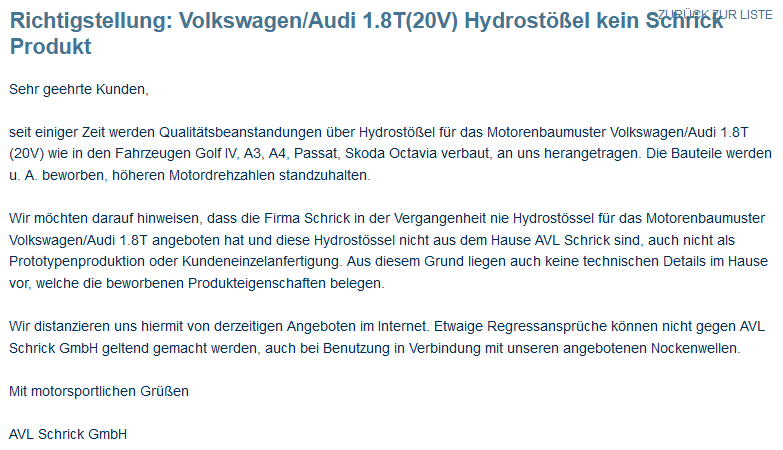 jemand erfahrungen mit Schrick Hydrostössel vr6 - VR6 Forum