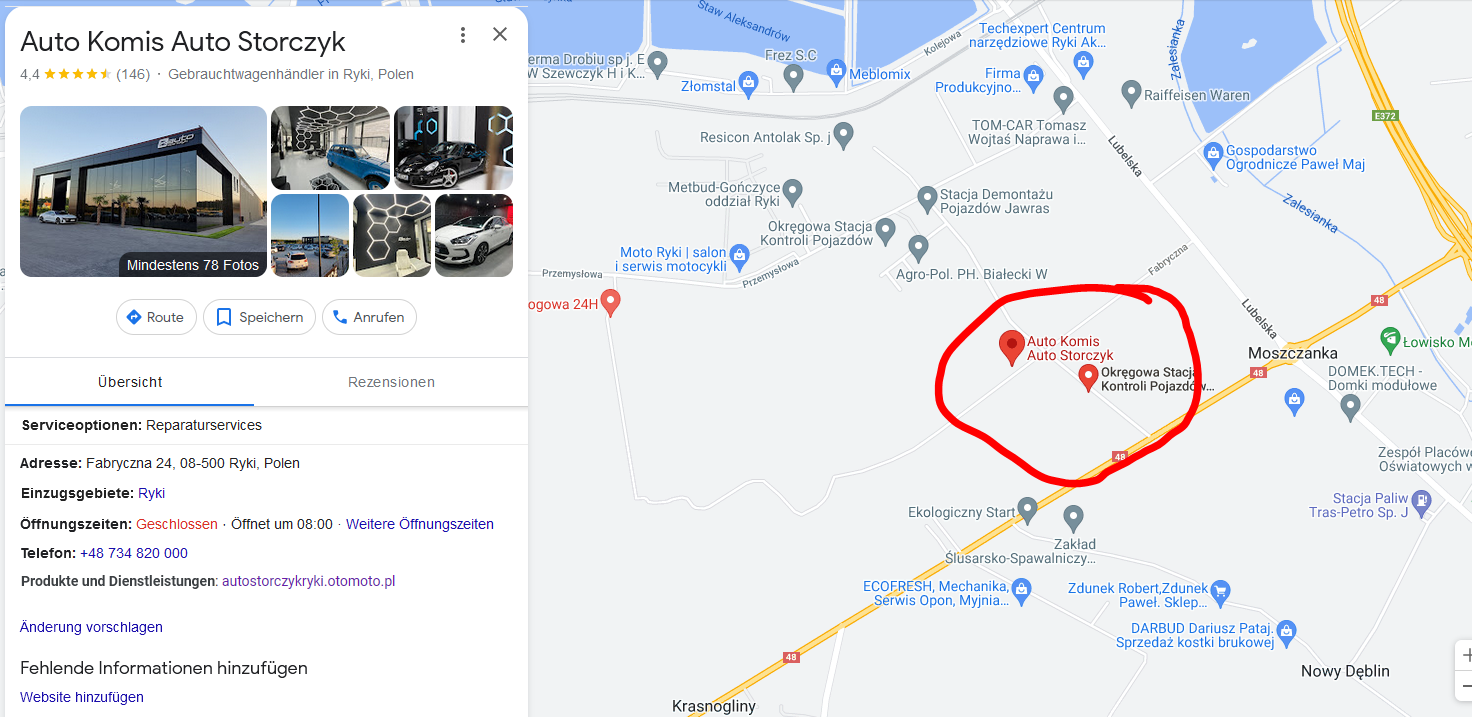 Dort befindet sich "Auto Szyby" - allerdings unter der gleichen Webadresse zu finden: