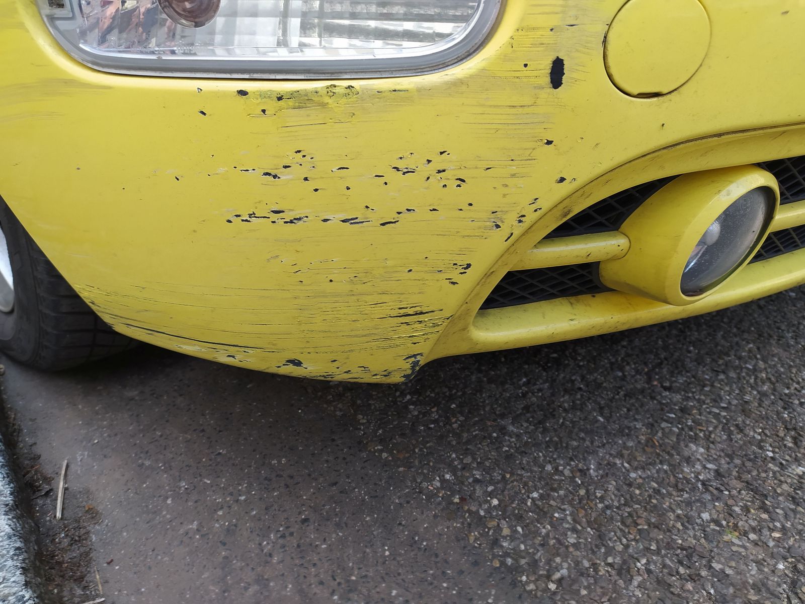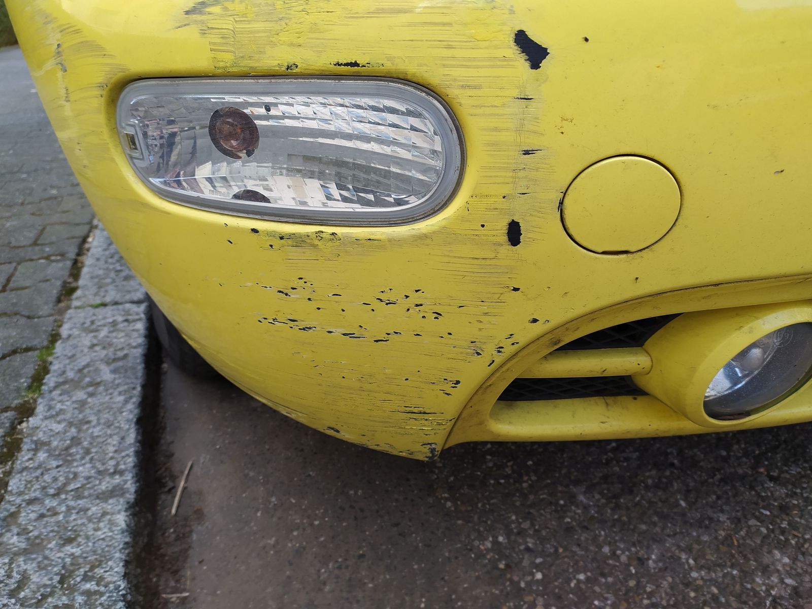 Ist ein New Beetle, Baujahr 1998, 2,0 Liter, 115 Ps. 185000 Kilometer, Stosstange ist aus Kunststoff.