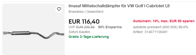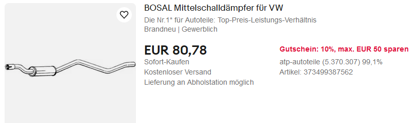Hatte gerade Teilekosten ausbaldowert - den von Bosal gibt es bei ATP für 80 € frei Haus ohne Sperrgutaufschlag: