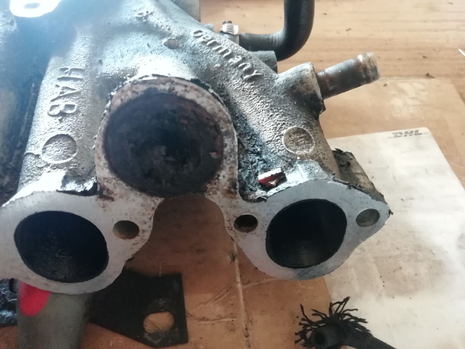 Guten Abend miteinander, leider habe ich derzeit wieder ein Thema welches mich beschäftigt. Ich habe gestern die Ansaugbrücke demontiert, weil ich die Dichtung erneuern wollte. Wie vermutet, war der Wasserdurchlauf zugesetzt. Jetzt habe ich allerdings festgestellt, dass der Abgaskrümmer einen Riss hat