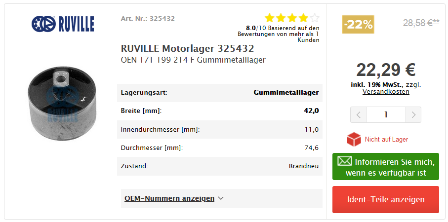 171 199 214 F hatte ich verbaut von Ruville. Eine kurze Zeit bin ich vorher das 171 199 214 G Modell gefahren, das war aber neu schon gefühlt zu weich.