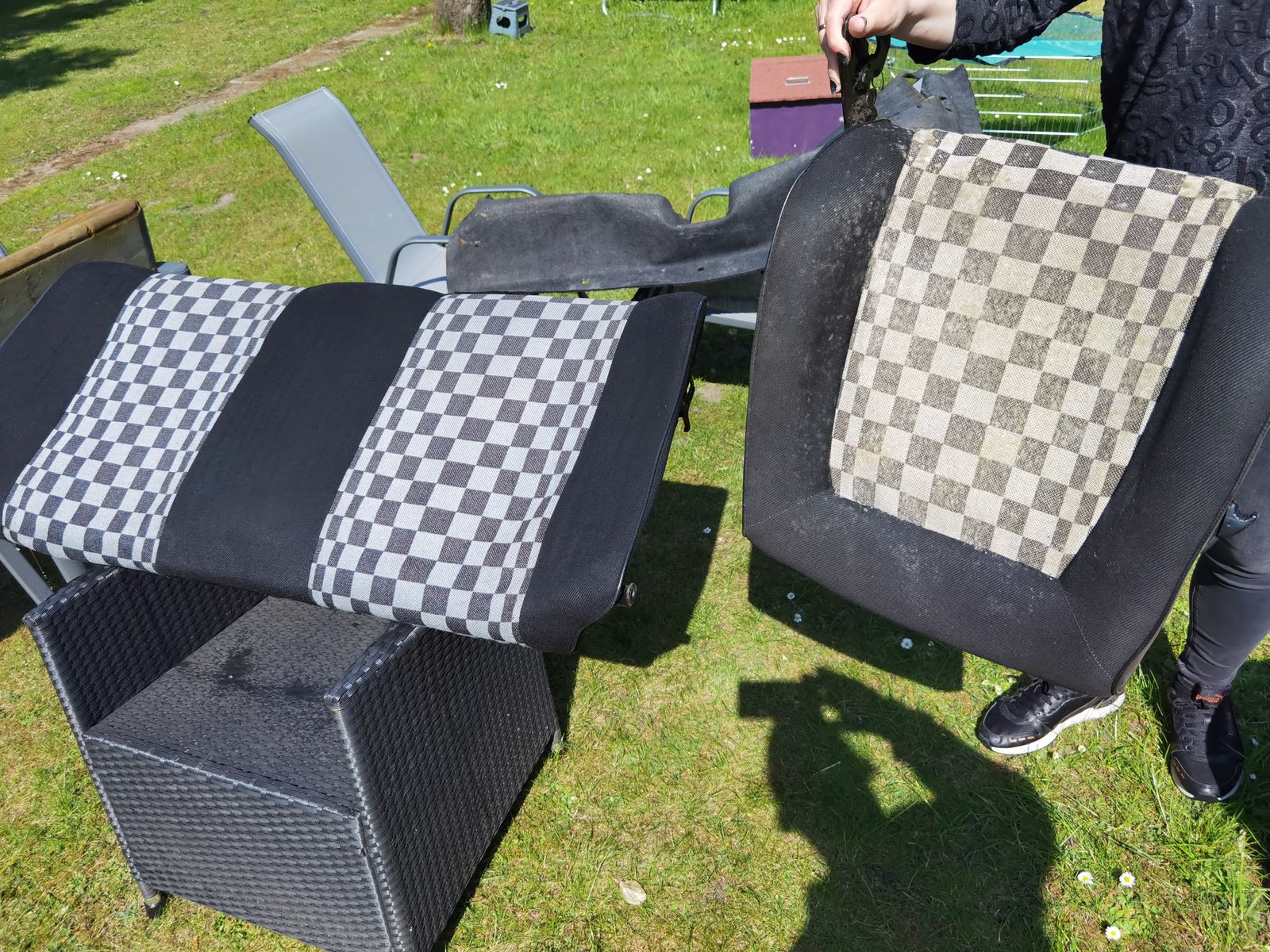 Die Sitzbezüge komplett strippen - ab in die Badewanne - Waschpulver rein - tunken und bürsten