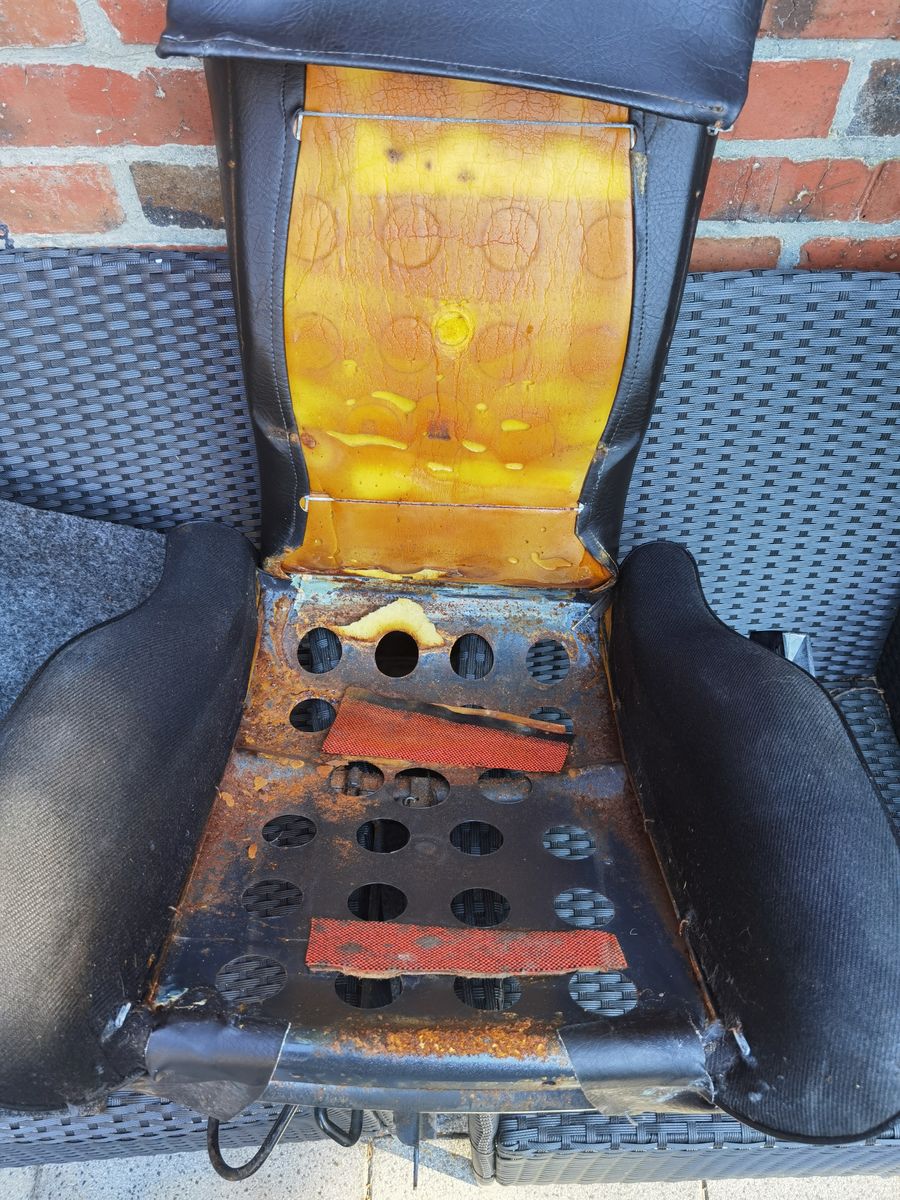 So der Fahrersitz und die Lehne vom Beifahrer sind heute zum Sattler gegangen. Ich bin gespannt auf den Preis und wie es am Ende aussieht. Der Stoff ist sogar vorrätig. Den Beifahrer Sitz konnte ich wieder mitnehmen. Der hat nichts. Und mir wurde gleich erklärt wie man den auseinander baut zum Trocknen. Allerdings muß ich wohl die Sitz Schale bearbeiten.