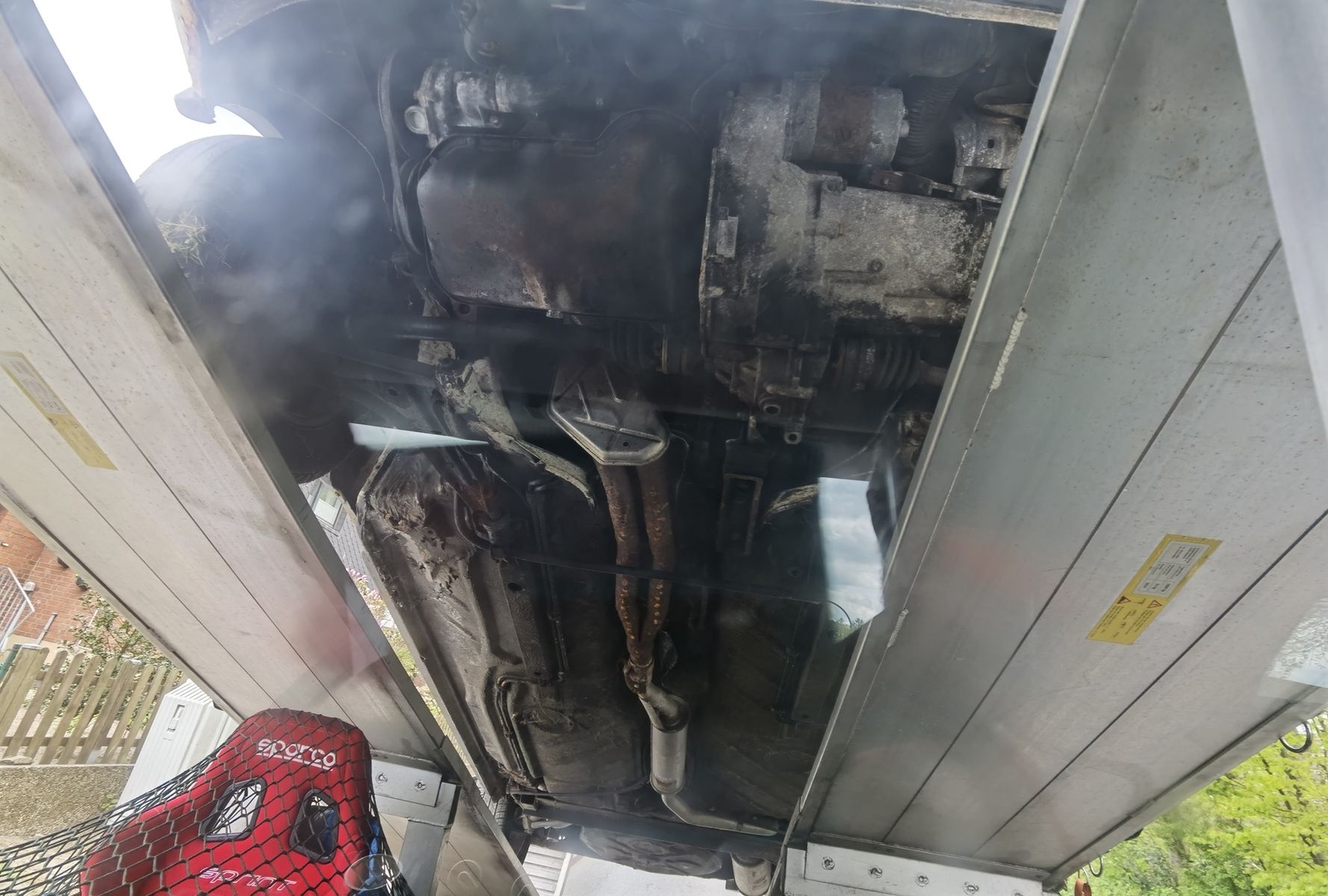 Ich hatte ihn rückwärts reingefahren und das Tor zugelassen damit der Gestank nicht ins Freie zieht - das war wohl ein Fehler :/