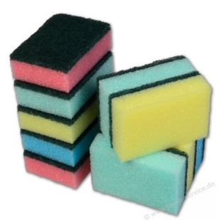 Diese Politur auf einen Schwamm geben. Ich nehme immer solche Topfreiniger - die reichen völlig aus: