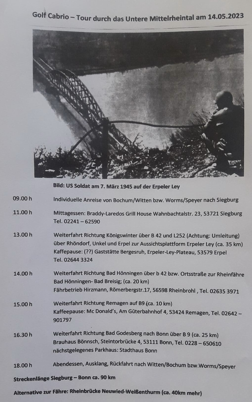 • Hallo zusammen wer am 14.5. Lust hat mit zu fahren nach Siegburg und kommt aus der Rein Main Gegend der ist herzlich willkommen bei uns mitzufahren. Wir Treffen uns am Rasthof Medenbach Ost um 9.00uhr zum Frühstück und Plausch um 10.00 Uhr geht's nach Siegburg wo wir den Stammtisch aus Witten treffen. Danach Plausch Mittagessen und ne Ausfahrt. Wetter soll trocken bleiben laut Wetterbericht.