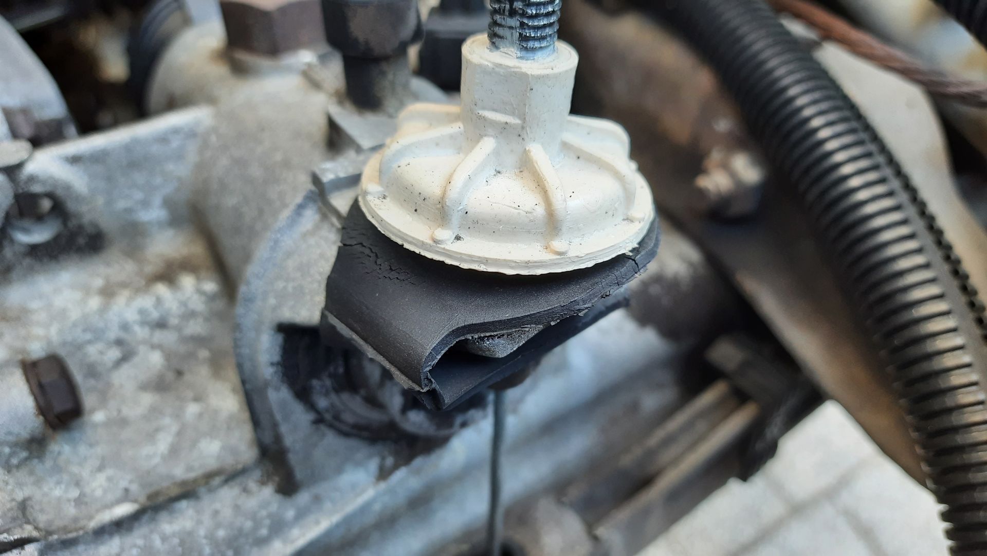 In diese Stück Gummi gehört noch eine Tülle, TN 171 721 308.