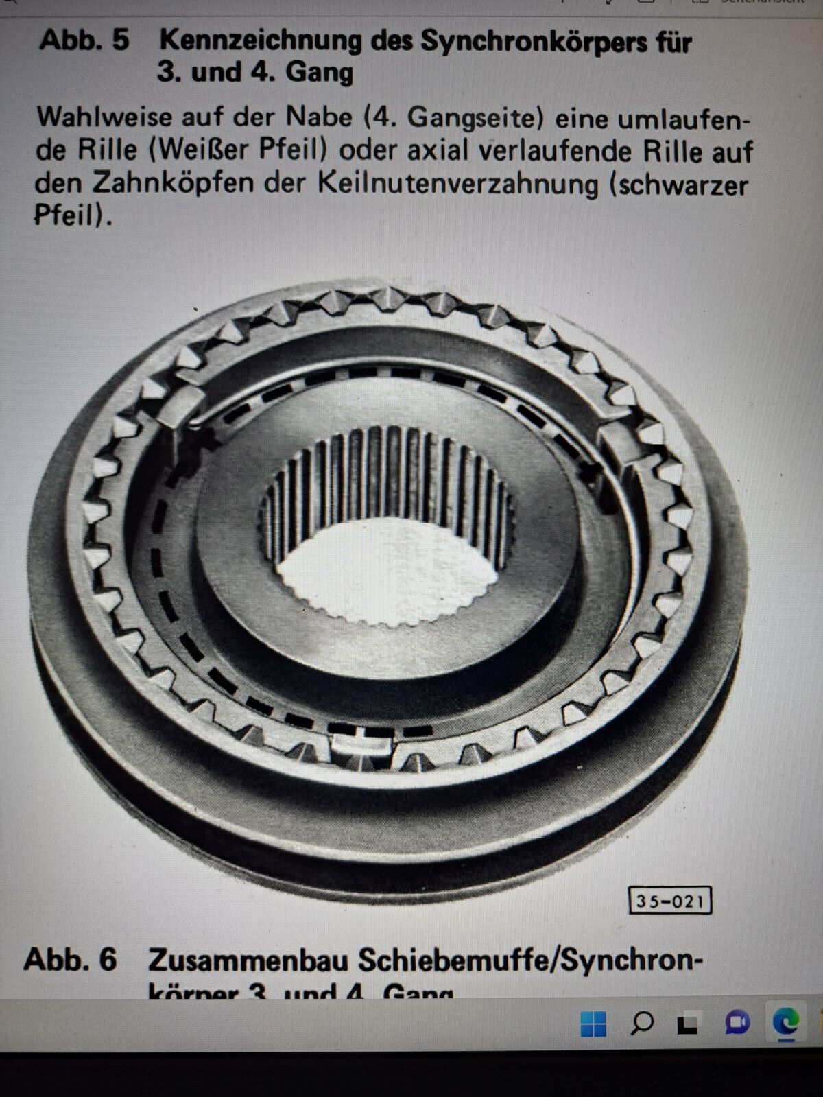 Gesagt getan, das Getriebe ist wieder offen. Dann stellte ich fest das an der Schaltmuffe von 3./4. Gang ein Keil rausgesprungen ist und die Schaltmuffe blockiert. Das sah dann so aus.