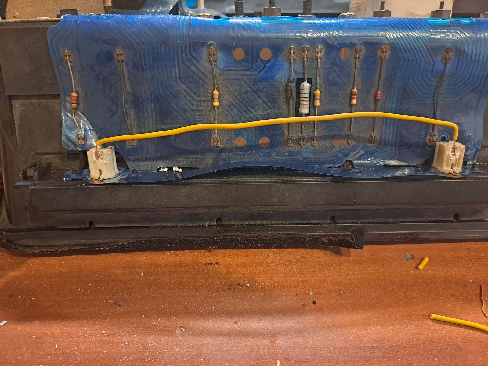 Ist beides hin, dann kannst du Masse von der großen Fläche an der MFA Display Beleuchtung ziehen. Plus geht gut auf der Abzweigung, wo es zur Display LED geht.