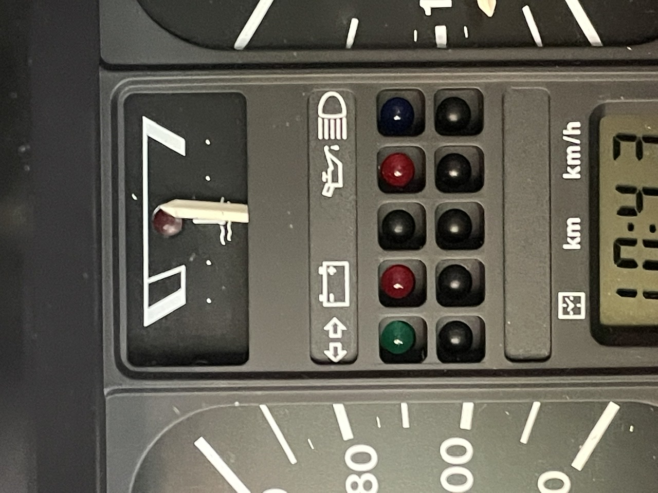 Also die Ersatzanzeige die ich bereit liegen hatte geöffnet, gelötet (war nat. intern gebrochen), montiert ... >> Leider steht sie ebenfalls zu tief.