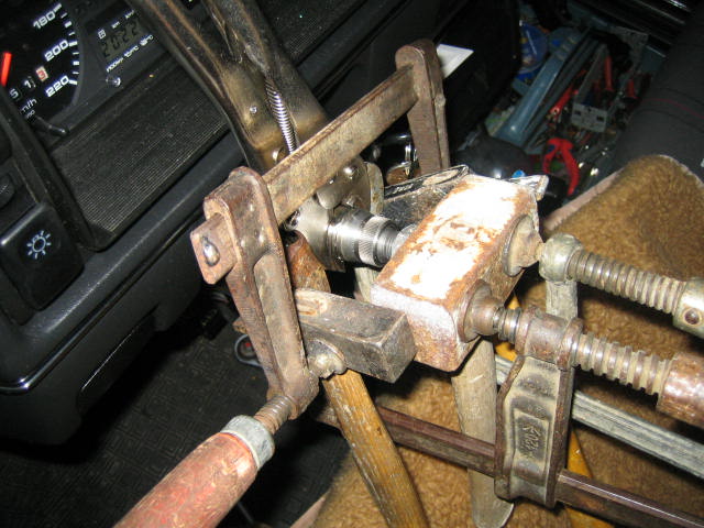 Passenden Maulschlüssel, meine 32er, hinter die Hülse, 2 Arm-Abzieher.