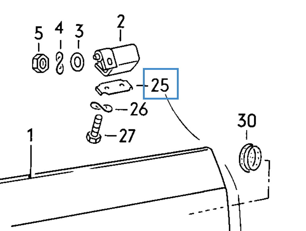 Sitzt beim Heckklappenscharnier und schützt dieses vor Verdrehen - ist entfallen im Katalog.