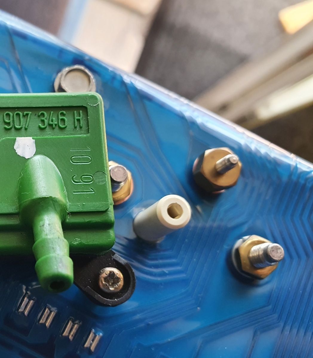 Die Messingmutter sitzt an der Temperaturanzeige als drittem Anschluss!