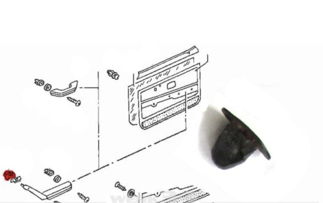 Es ist die Klammer für die Arretierung Armlehne Tür oben. Besteht aber normalerweise aus 2 Teilen. Beim Einbau kommt noch eine "Tülle" mit dazu