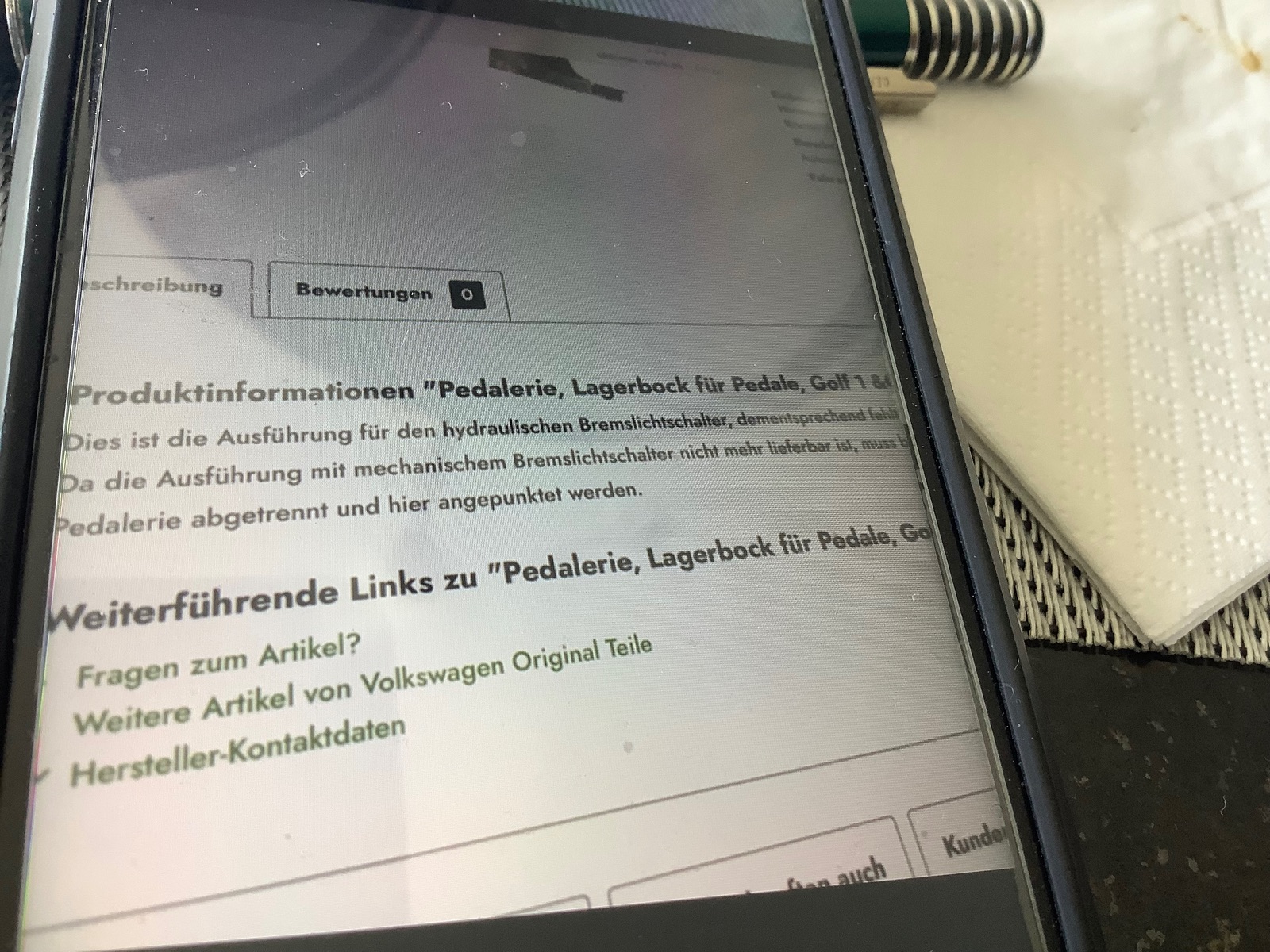 Danke hab ich gesehen,es gibt wohl unterschiedliche Aufhängungen + Anschlüsse f d Bremslicht Schalter ,lt.Oldtimerwerk ! bei mir ist elektrisch verkabelt +Oldtimerwerk hat nur mit hydr Anschluss?? am Lager