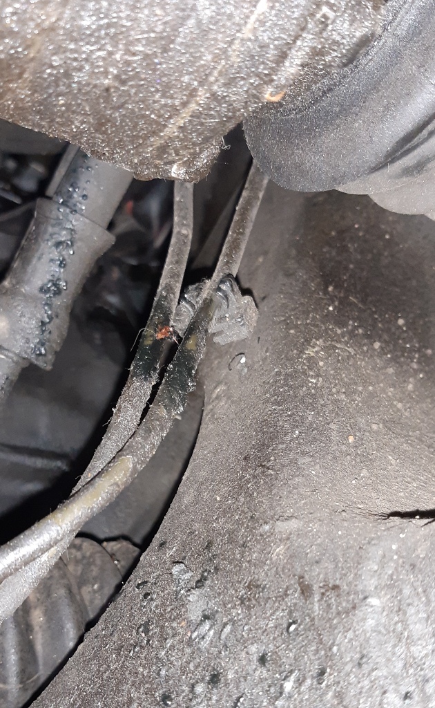 1x der Clip für die Bremsleitungen an der Karosserie vorne links zwischen Motorraum und Radhaus: