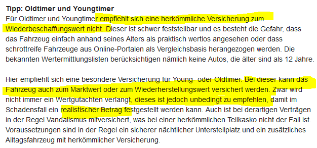 Wenn die Karre erst mal weg ist kann nämlich keiner mehr den Wiederbeschaffungswert ermitteln