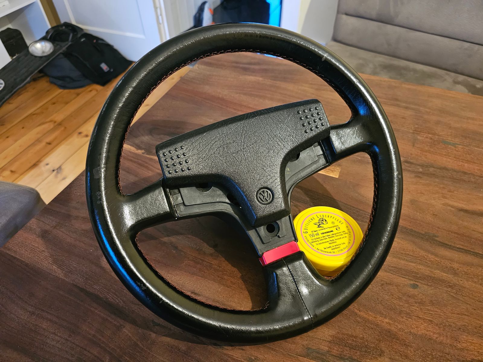 Für meine Begriffe wäre es daher auch möglich, den Lederkranz mit Lederfarbe vom Lederzentrum neu zu lackieren.