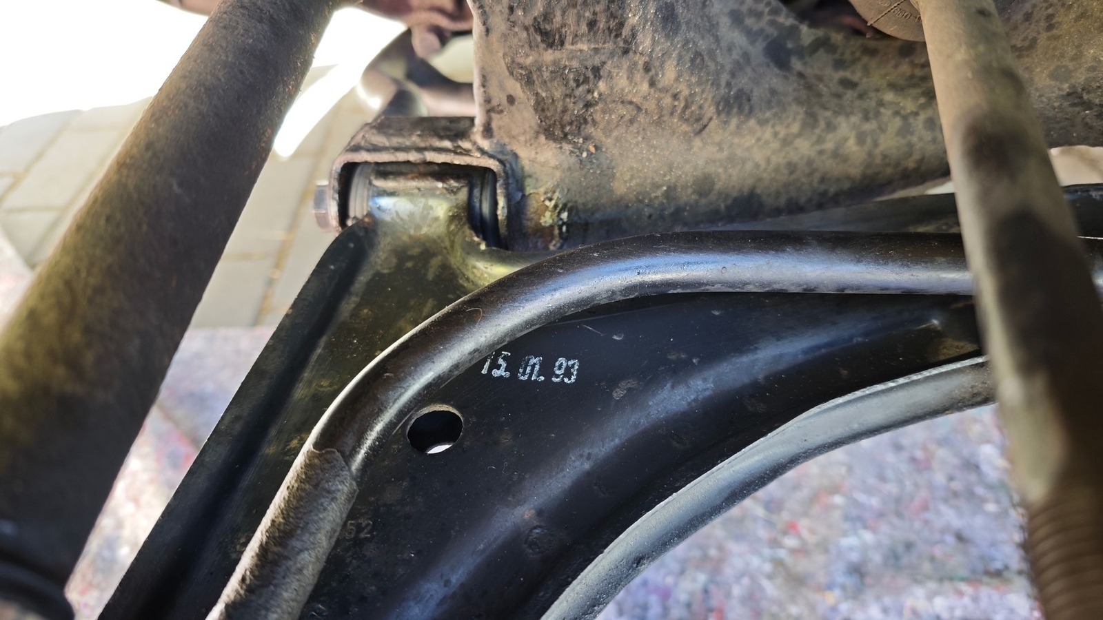 Ich bin erstaunt, wie gut die Querlenker an sich noch erhalten sind, kaum Rost dran, sogar das Datum ist nach dem überwischen noch zu sehen...