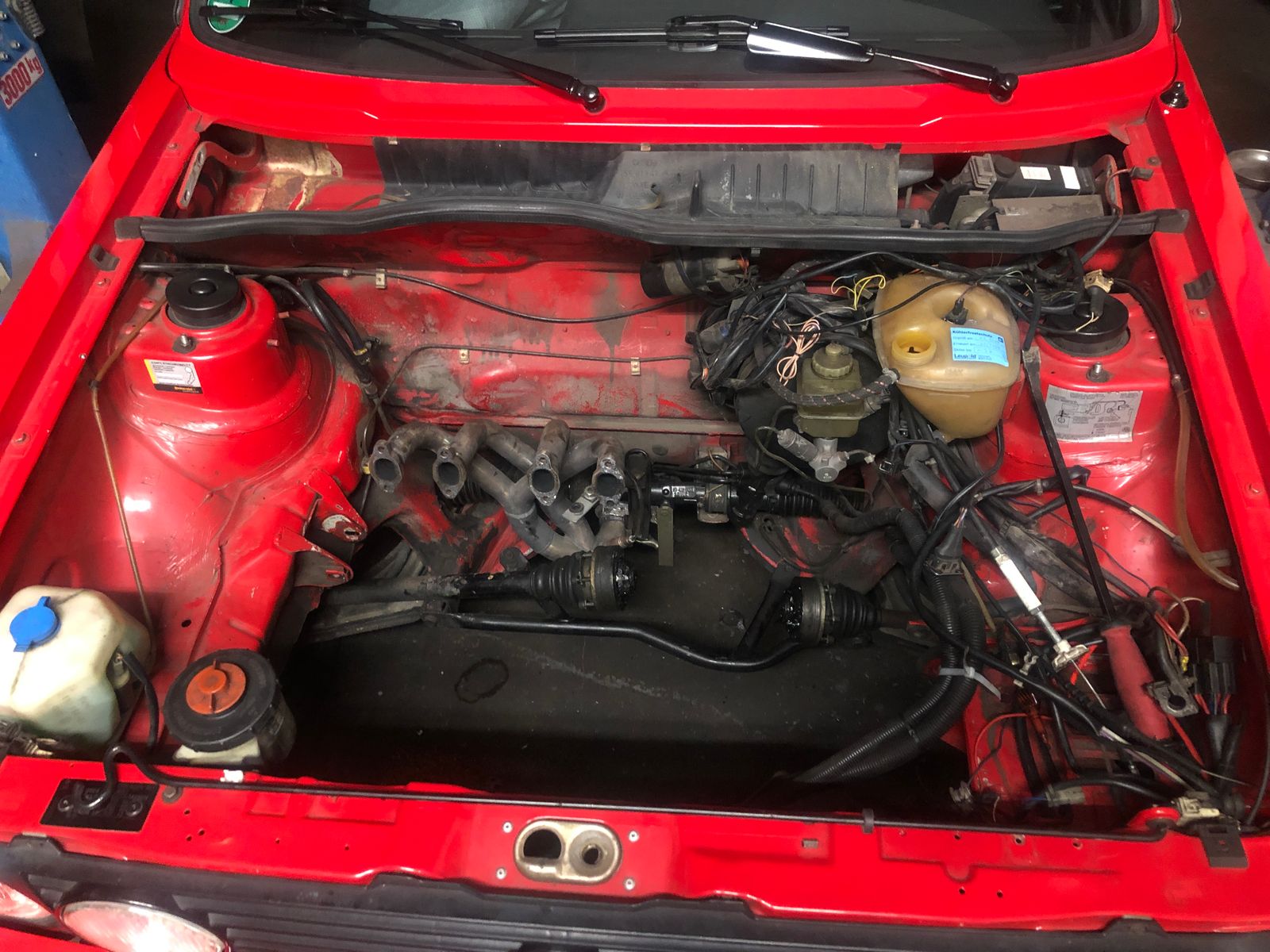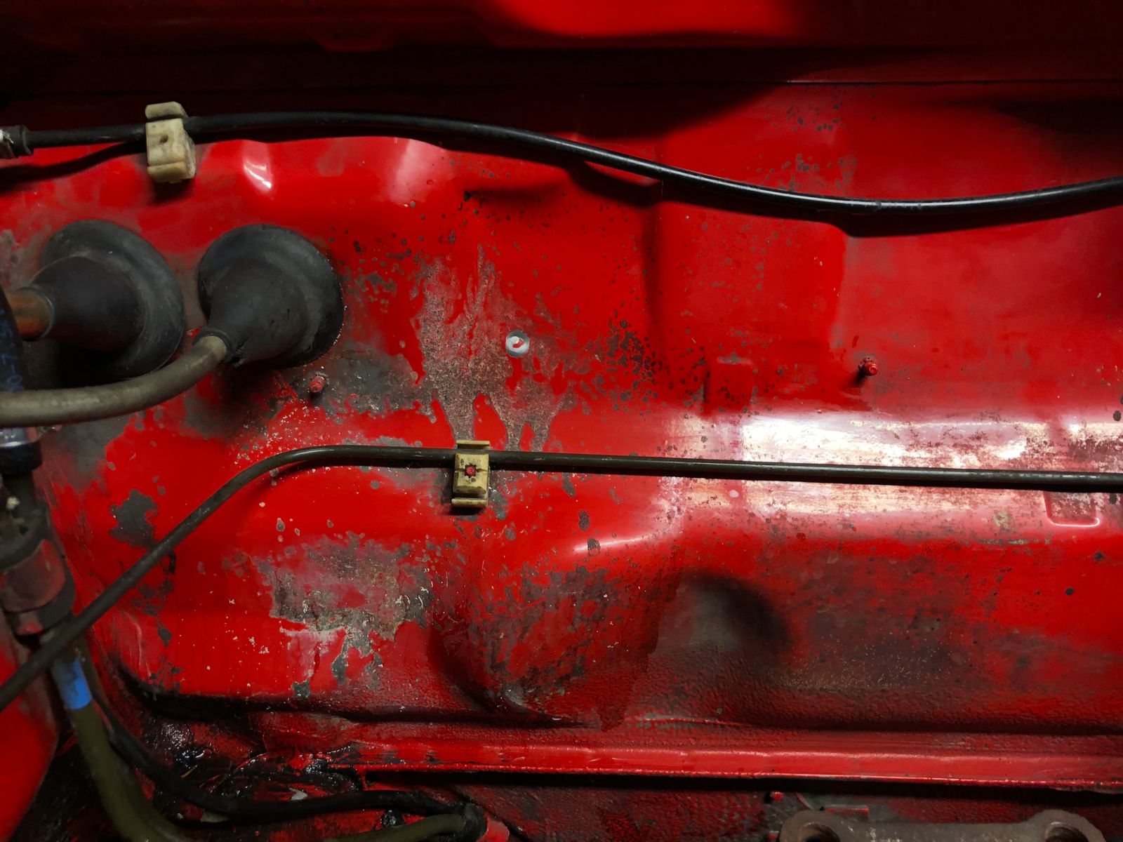 ich wollte mal "feucht durchwischen" im Motorraum damit es etwas schöner aussieht und man nicht immer schwarze Hände hat, wenn man irgendwas macht. Schwarze, fettige Dreckkruste geht ganz gut weg mit einweichen mit WD40 und dann Bremsenreiniger oder Isopropanol.