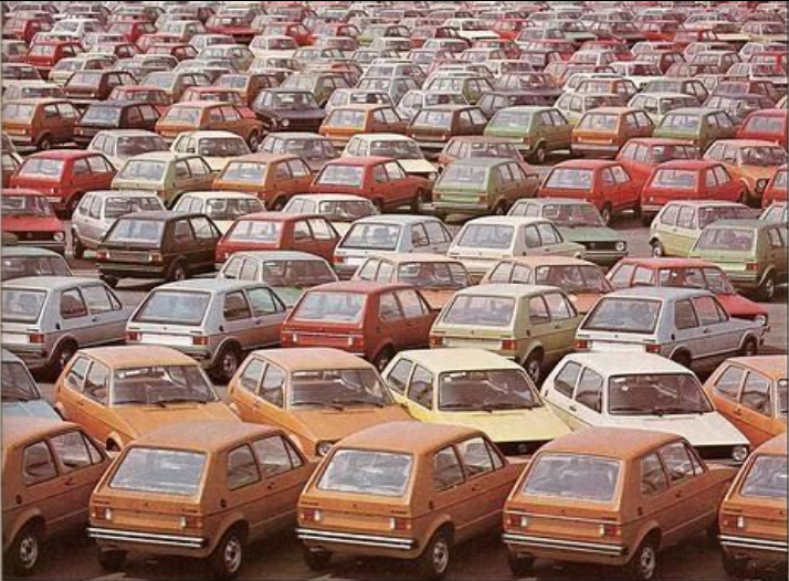 Das sind ja nicht alles Neuwagen die auf dem Parkplatz stehen