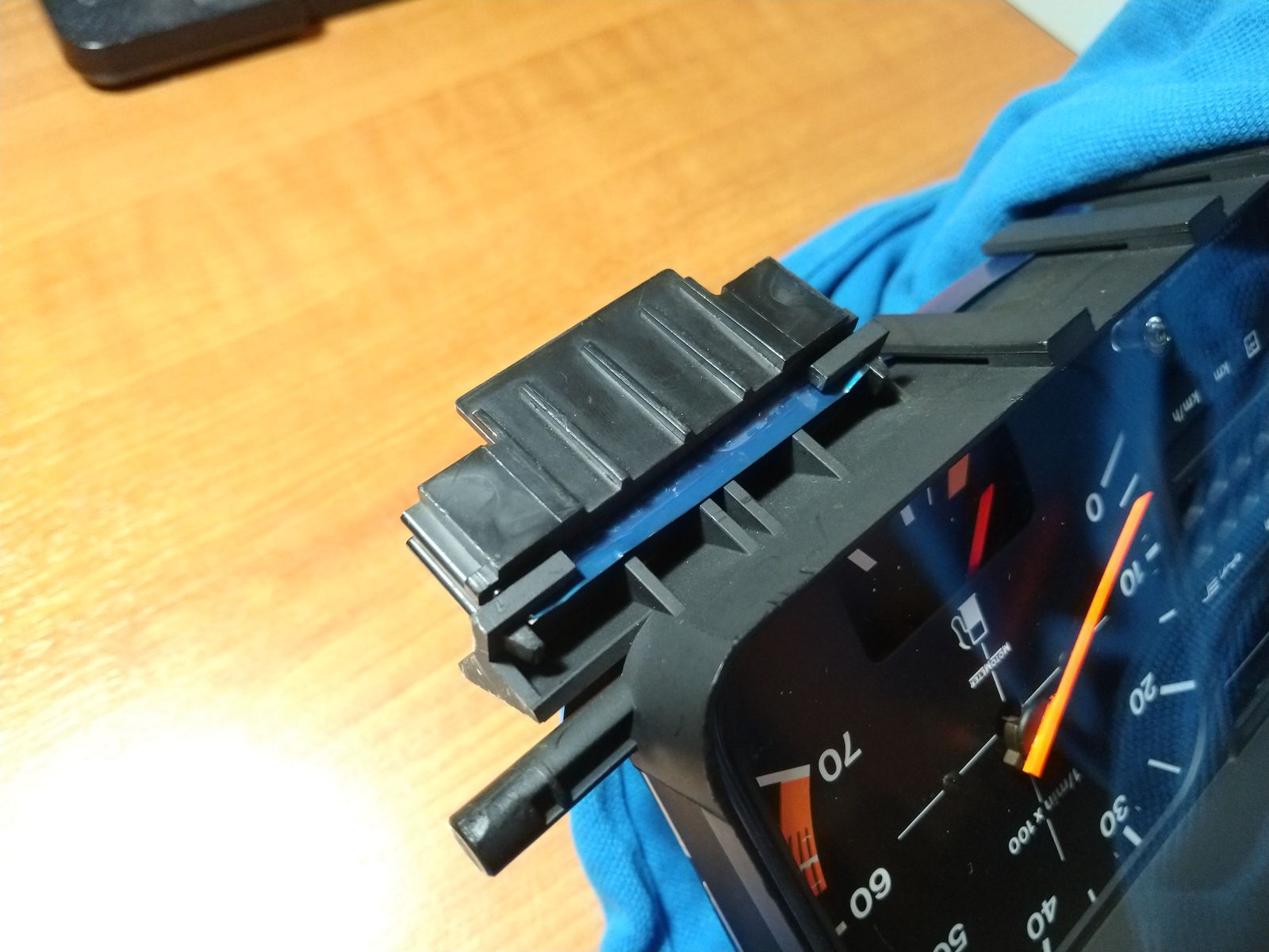 Das kann aber nur passieren, wenn man den schwarzen Rahmen am Tacho weg hatte. Diesen Rahmen kann man verkehrt herum aufstecken und damit auch den Hauptstecker. Der Rahmen hat eine Führung, die das falsche Aufstecken verhindern soll.