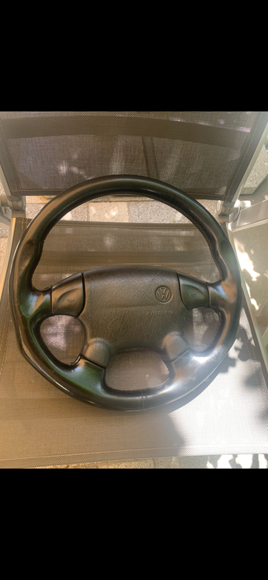 Mein originales Sportlenkrad habe ich für das Satteln nit genommen, da hat ein Polo (GT?) Lenkrad hergehalten. Das ist ja quasi das Gleiche, nur ohne Leder ![]()