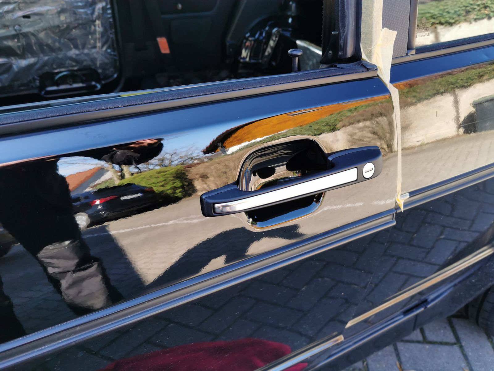 Habe nur mal das obere Drittel poliert um Griff und Spiegel wieder montieren zu können.