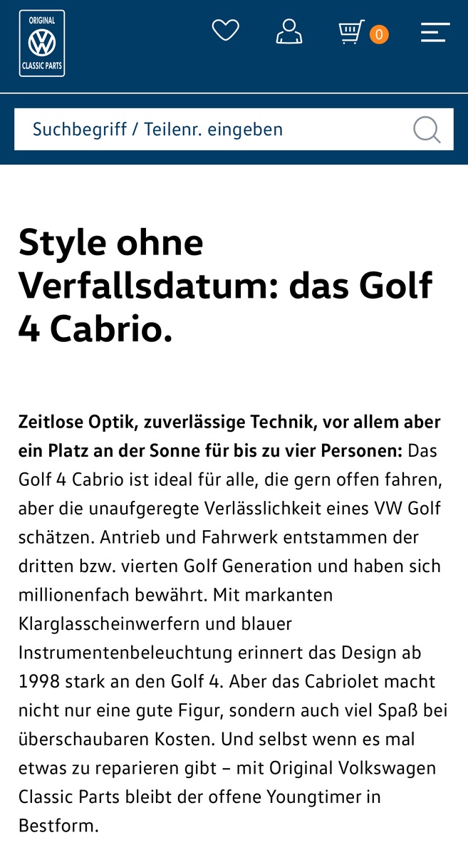 Der offizielle Shop für Volkswagen Ersatzteile direkt vom Hersteller: rund 60.000 Produkte in Originalqualität für VW Oldtimer, Youngtimer und Daily Driver.