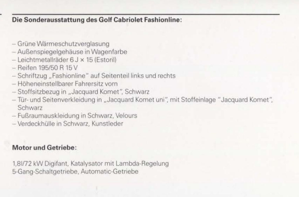 Die Farbe sieht für mich nach dustymauve perleffekt (Lackcode LC5P) aus - wenn original wäre es ein Fashionline. Aufkleber hätte er dann vor dem hinteren Radlauf. Gan nachlackierungsfrei sieht das Cabrio aber auch nicht aus, daher sind die sicherlich in dem Zuge mal verschwunden. Der Fashionline wurde zwar auch nicht mit den Felgen ausgeliefert, aber sowas kann einer der Vorbesitzer ja mal schnell getauscht haben.
